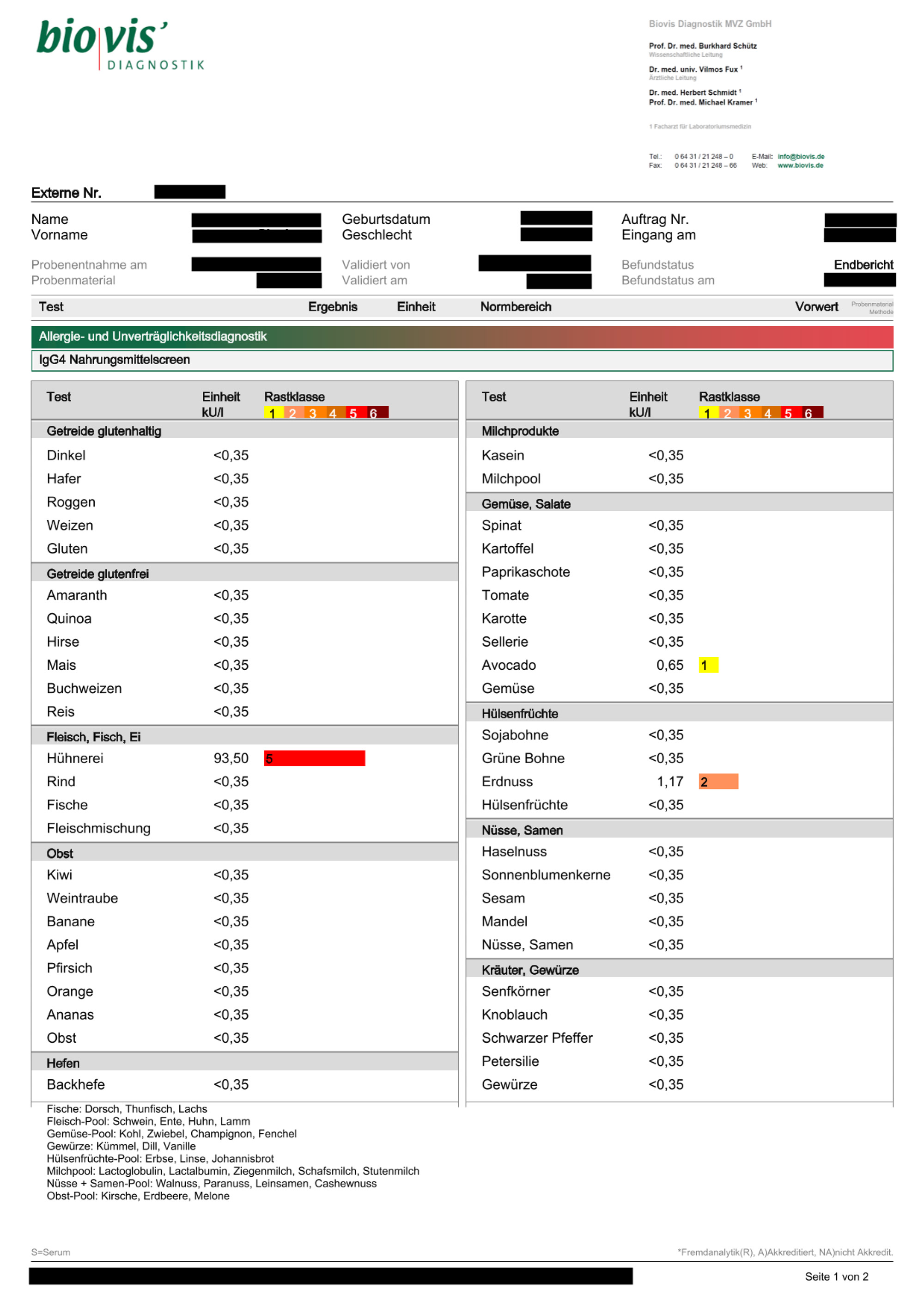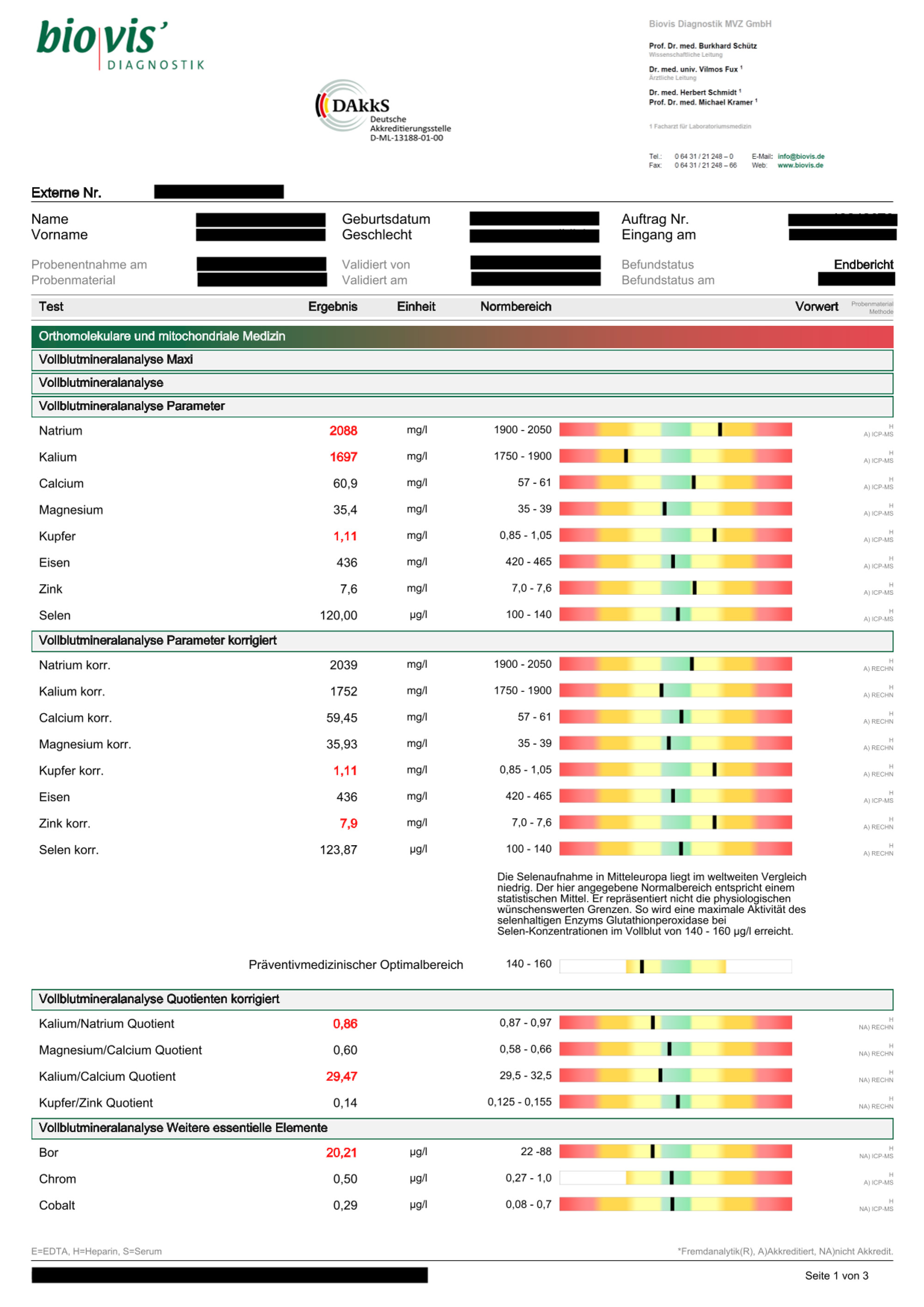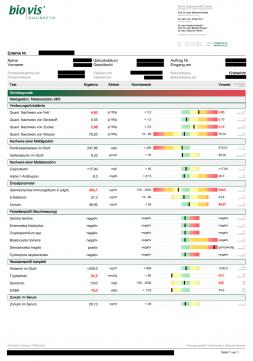 Auf dieser Seite finden Sie einige interessante Musterbefunde zu verschiedensten Laboranalysen. Die Befunde sind auch für Laien sehr anschaulich aufbereitet. Die genaue Bedeutung Ihrer persönlichen Laborergebnisse bespreche ich mit Ihnen in der Sprechstunde.
